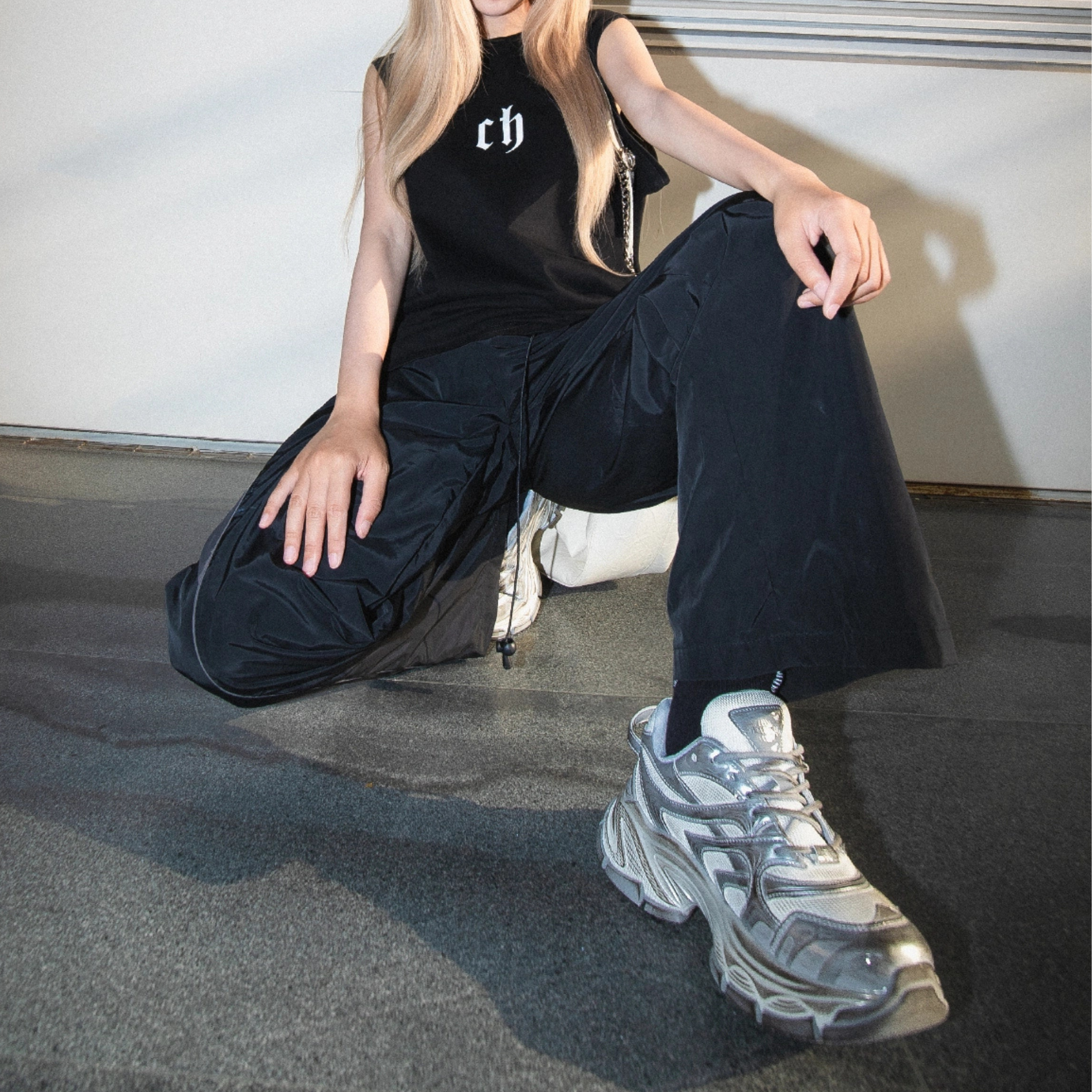 ビッグシルエットに約5cmのヒール高を組み合わせ、足元に圧倒的な存在感を与えます。